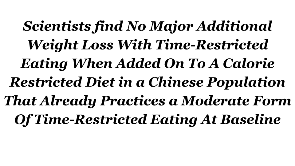 2022 年 4 月 21 日,一组中国研究人员在《新英格兰医学杂志》上发表的这篇新论文实际上提出了一个问题:在热量限制饮食中添加 TRE 是否具有额外的减肥益处。