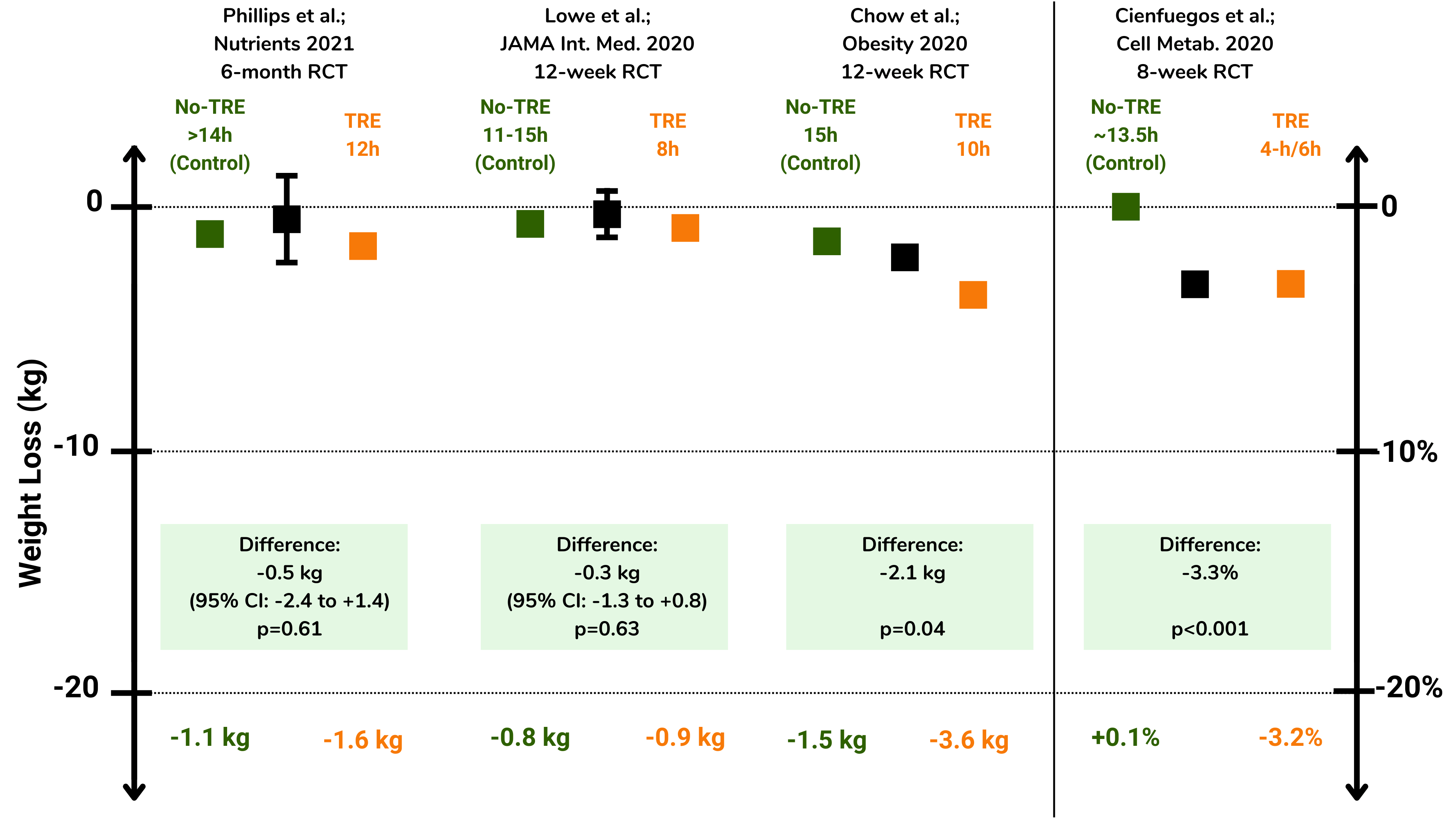 我只想补充一点,在这篇博文中,我们只讨论了 TRE 对减肥的影响。也有人认为 TRE 可以改善健康,而不影响体重。不过,这是另一篇文章的主题。