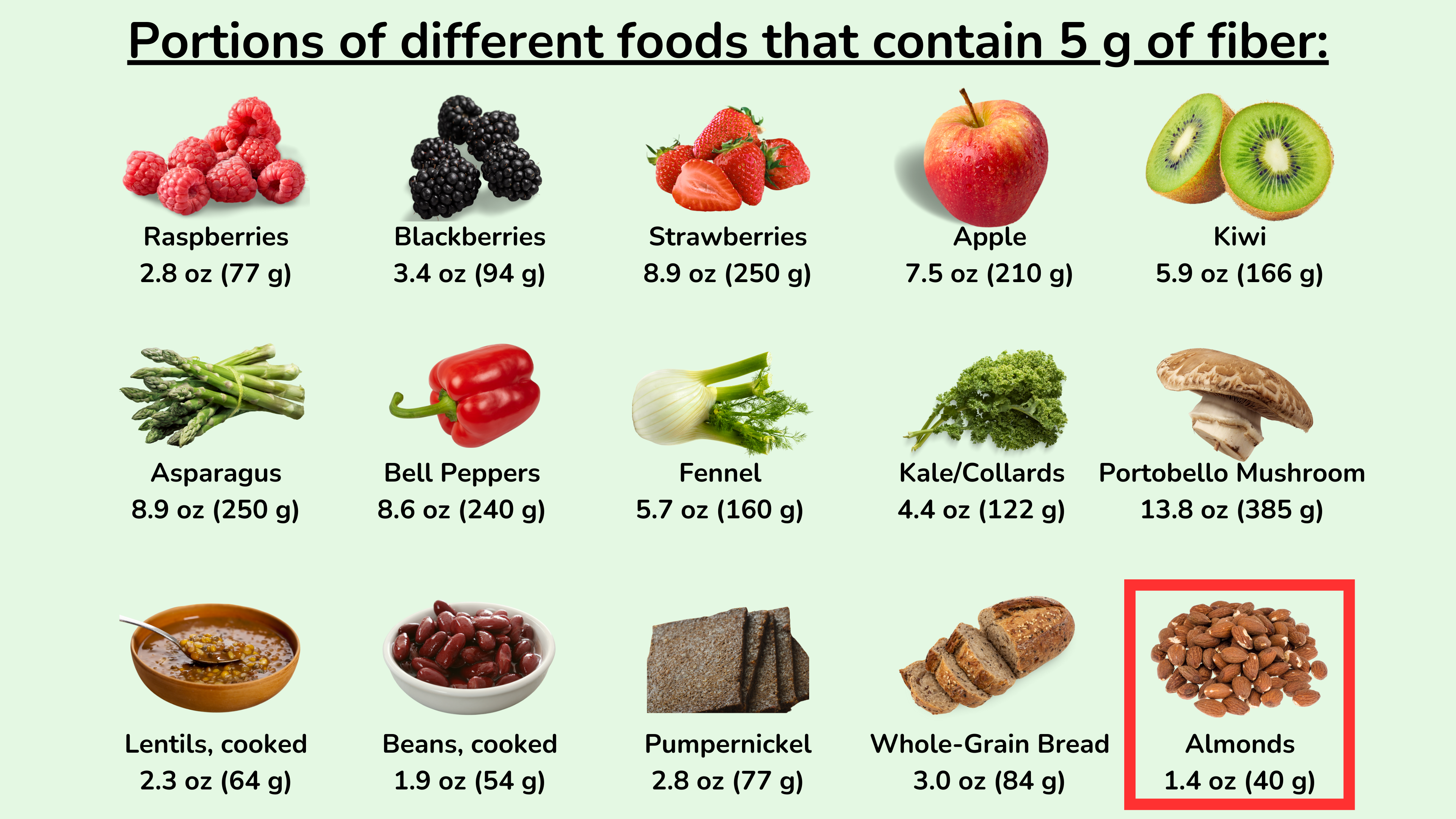 含有 5 克纤维的不同食物的份量