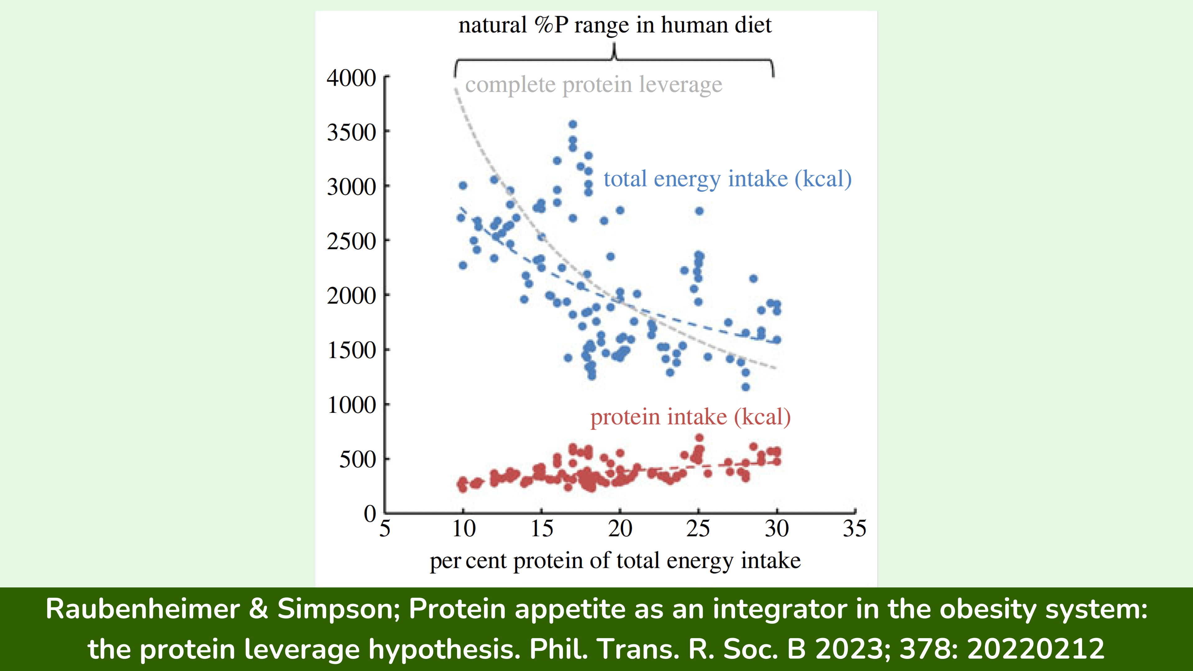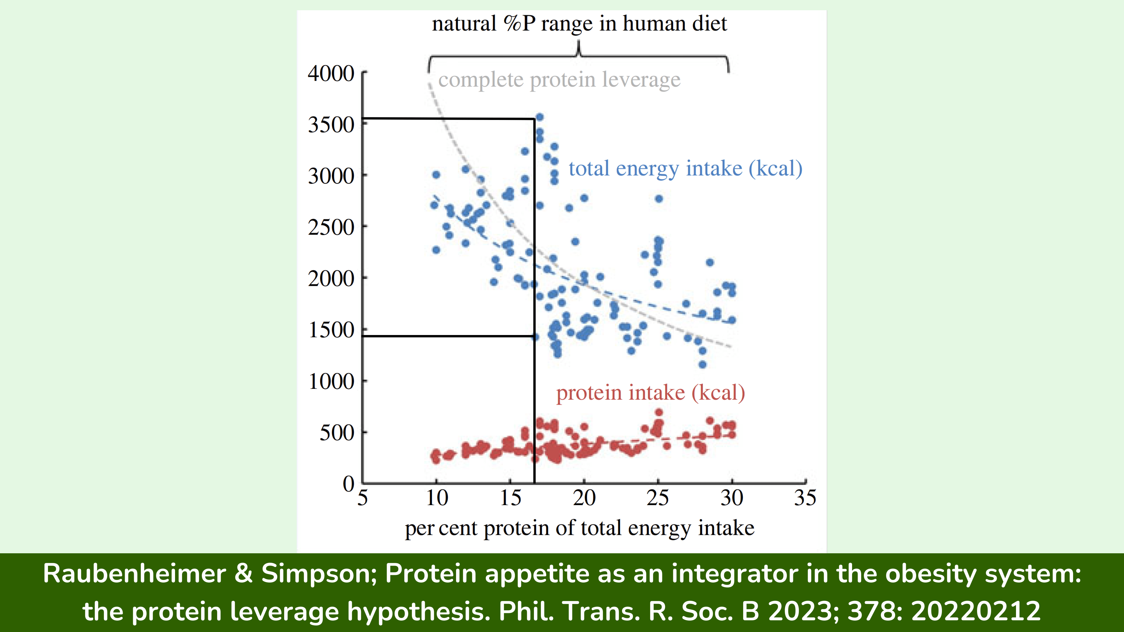 这些数据与我的同事 David Raubenheimer 博士和 Stephen Simpson 博士提出的蛋白质杠杆假说相符,他们提出,包括人类在内的生物不仅对卡路里有胃口,而且对蛋白质也有胃口。在他们的职业生涯中,他们收集了大量数据来支持他们的假说。他们能够证明,从果蝇到昆虫再到各种哺乳动物等各种物种,只要食物中的蛋白质含量低,它们就会摄入更多卡路里。