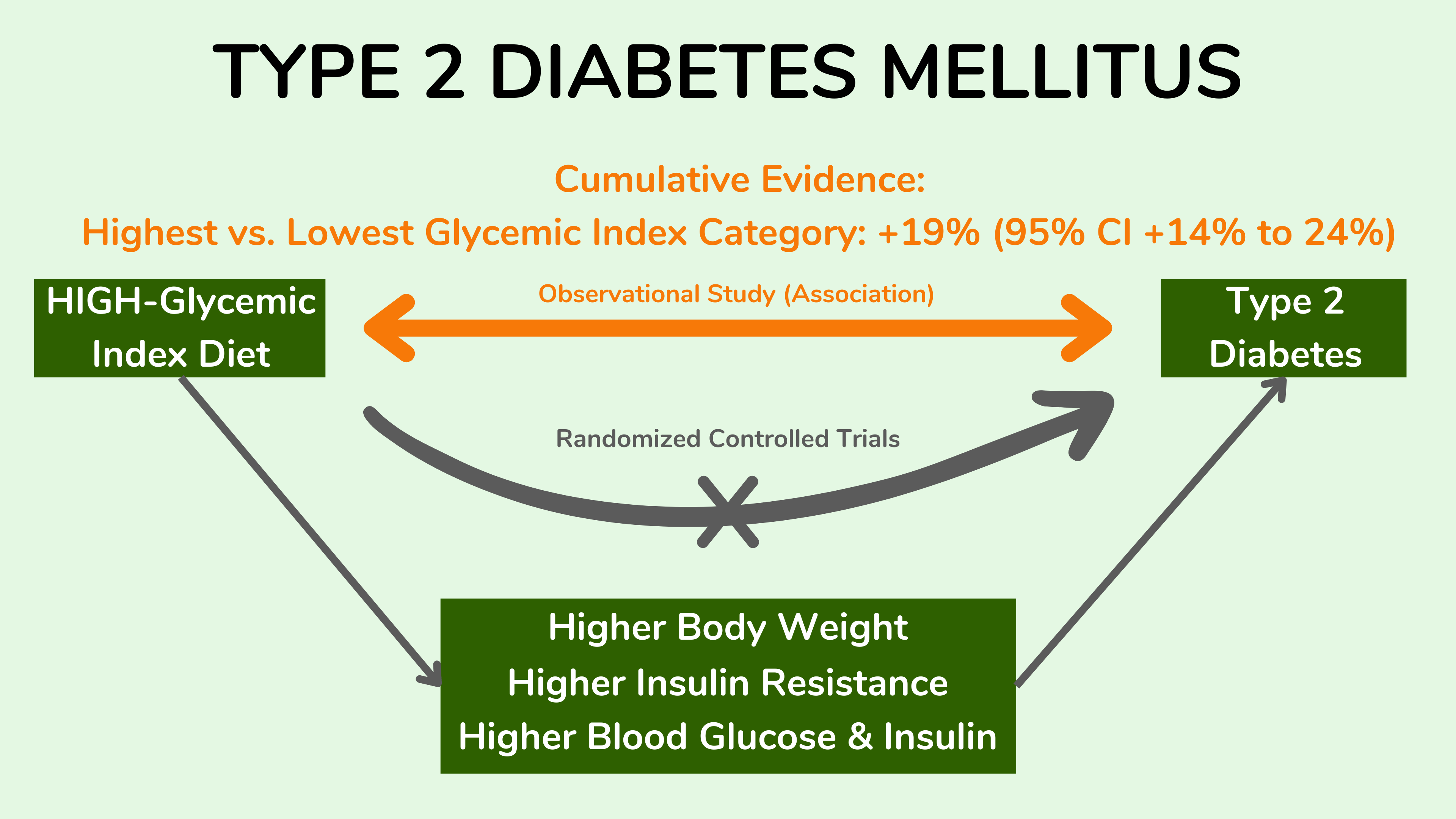 综合起来,观察性研究表明,高升糖指数饮食与 2 型糖尿病风险增加之间存在关联。这与随机对照试验的数据一致,该数据表明,高升糖指数饮食也会增加体重和胰岛素抵抗。虽然证据尚无定论,但观察性研究和干预性研究之间的一致性令人放心。