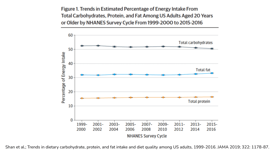 不幸的是,我们用来解决这个问题的数据非常少,因为它们要么是调查数据,也就是说它们是基于自我报告的,要么是国家层面的粮食供应数据,这些数据并不能准确反映每个人的实际饮食。但我确实认为,这些数据让我们对发生的事情有了相当可靠的认识。