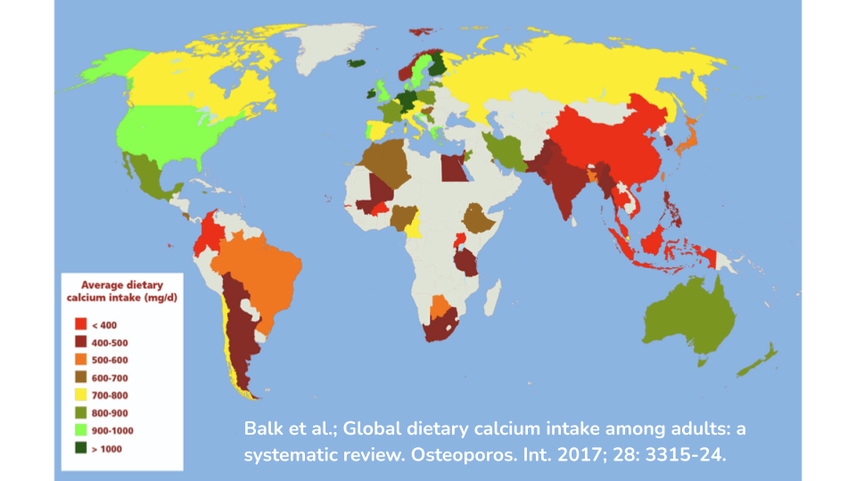 - Balk 等人;全球成年人膳食钙摄入量:系统评价。Osteopos. Int. 2017;28:3315-24。
