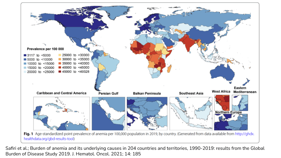 - Safiri 等人;1990 年至 2019 年 204 个国家和地区的贫血负担及其潜在原因:2019 年全球疾病负担研究结果。J. Hematol. Oncol. 2021;14:185。