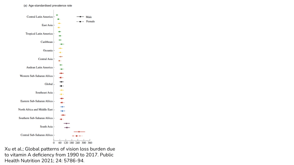 - Xu 等;1990 年至 2017 年因维生素 A 缺乏导致的视力丧失负担的全球模式。公共卫生营养。2021;24:5786-94。