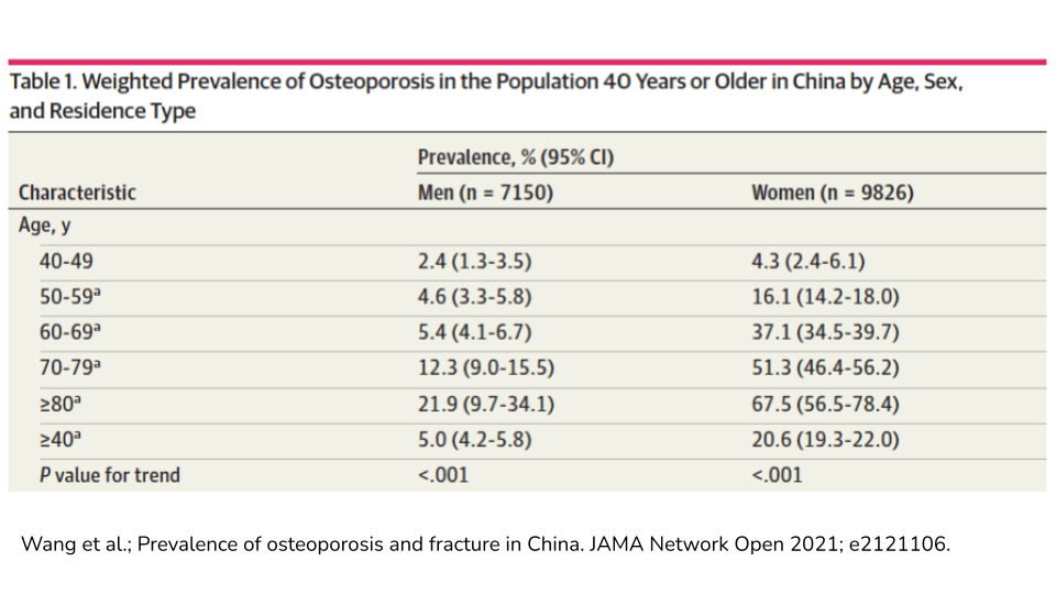 - 王等;中国骨质疏松症和骨折的患病率。JAMA Network Open 2021;e2121106。