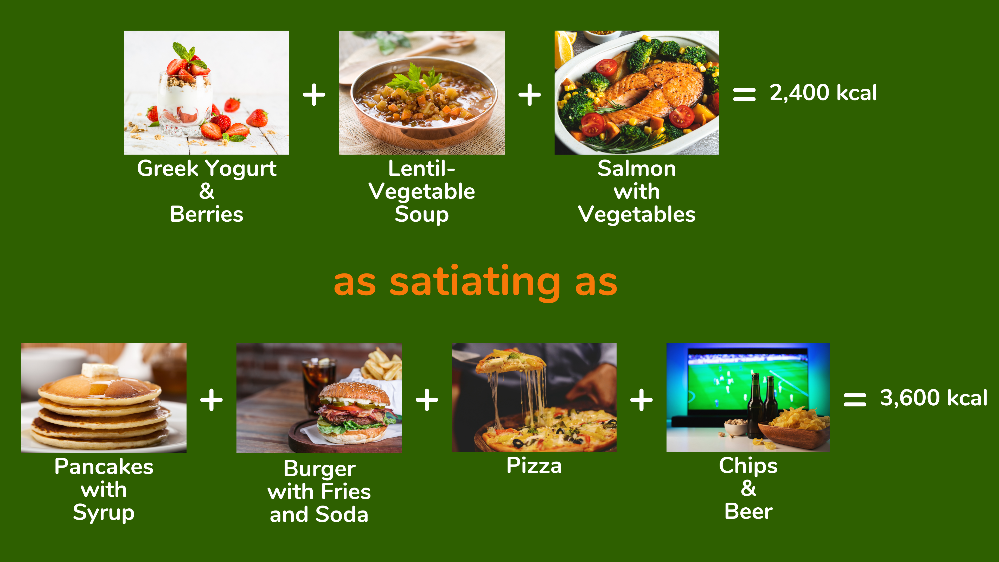 研究发现,对于那些只吃到饱的人来说,有几个因素会自发导致摄入热量增加。让我们来讨论一下这些因素,以及如何帮助我们弄清楚 Sam 如何改变饮食来减少摄入热量,而无需计算或主动限制热量。