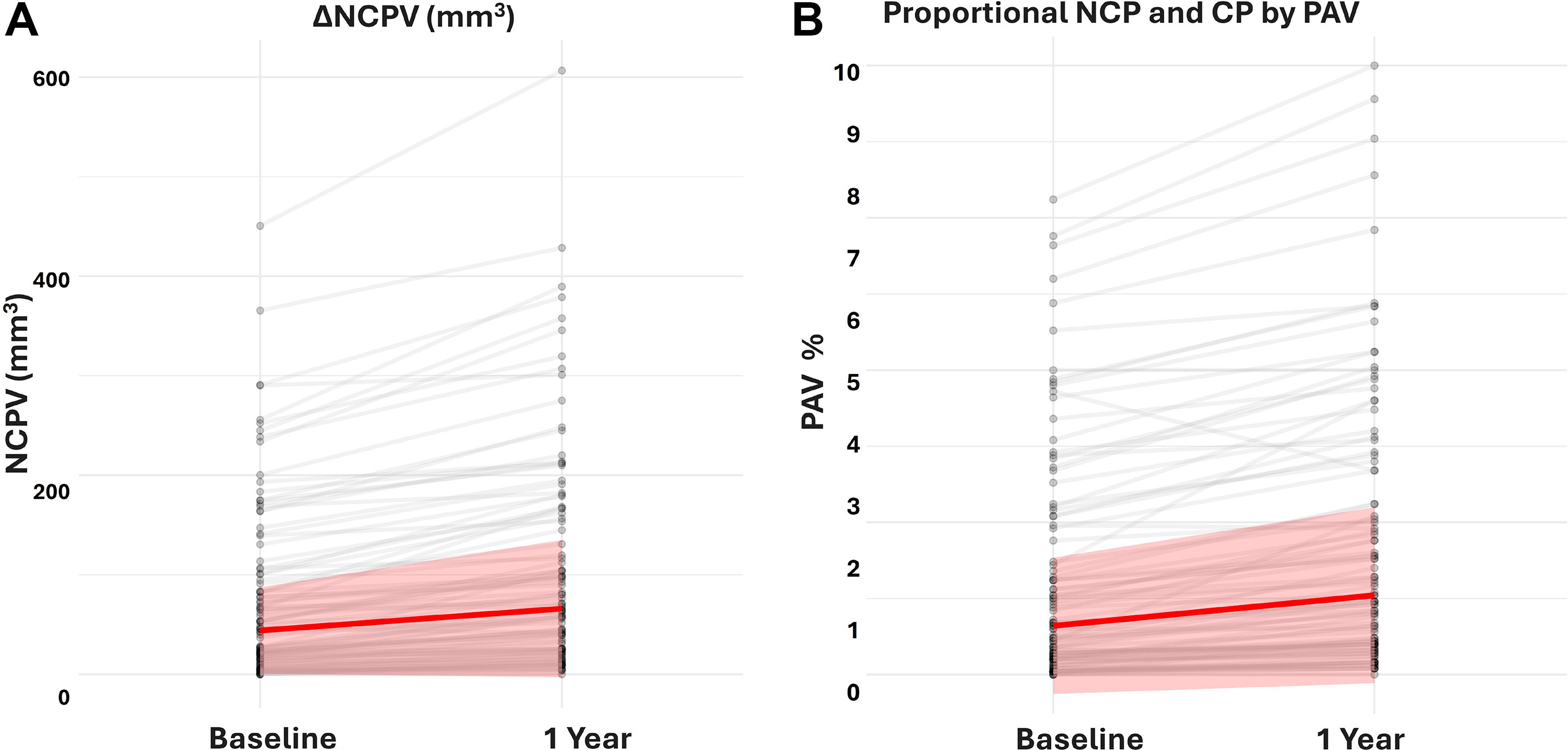 LMHR患者的PAV中位数增幅为0.8%。值得注意的是,基线时冠状动脉钙化(CAC)评分为0的患者PAV增幅较低(0.5%),而CAC评分>100的患者PAV增幅则更高,为2.4%。