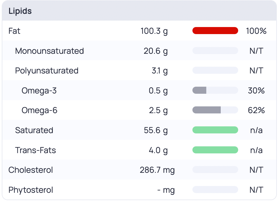 **3. 总体缺乏多不饱和脂肪,并含有有益脂肪**