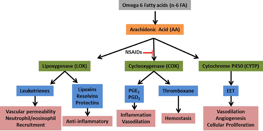 即使多不饱和脂肪酸摄入量较低且有强大的抗氧化剂支持,一些亚油酸仍然会转化为促炎性二十烷酸,如前列腺素和白三烯。