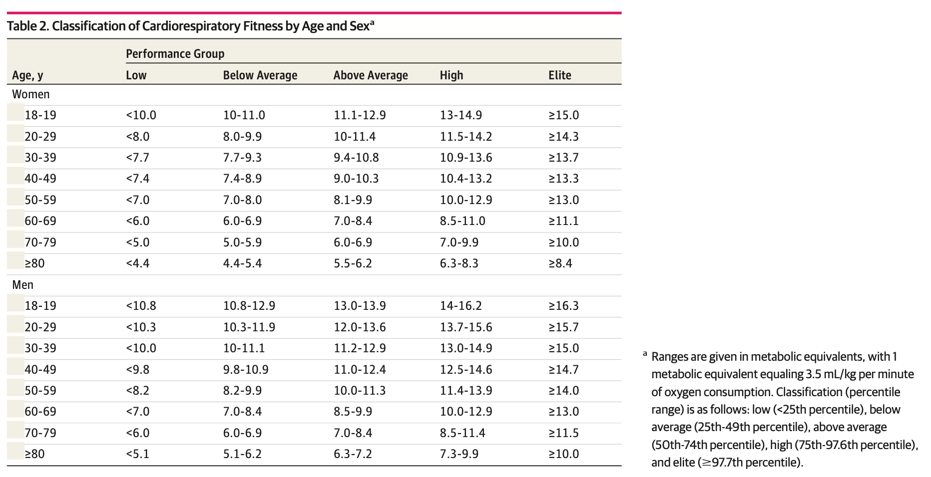 - VO2 Max 随年龄下降的趋势: 大约每过十年,VO2 Max会下降10%。