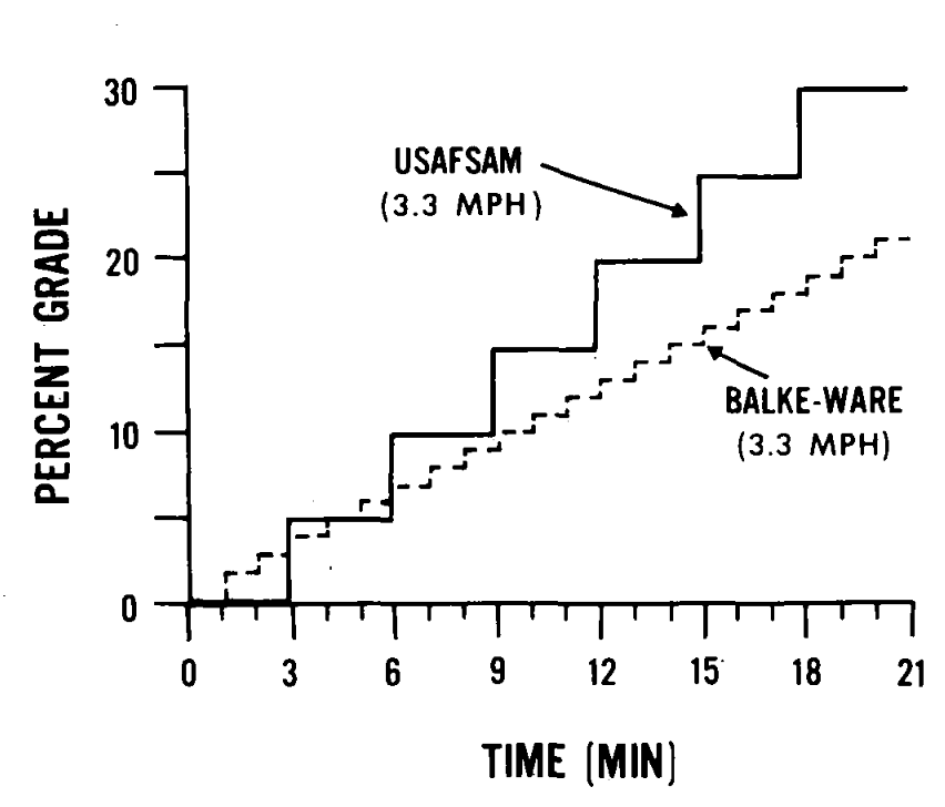 在最常被引用的四项研究中,Blair 1996和Sui 2007使用了 Balke(或 Balke-Ware)协议,Mandsager 2018使用了多种协议,这些协议似乎主要集中在 Bruce 和 USAFSAM,而Kokkinos 2022使用了 Bruce 协议。
