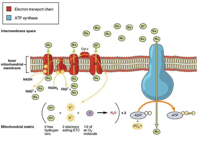 关键在于: 你不能只是多吃碳水化合物。 你需要一个畅通的电子流——从葡萄糖→丙酮酸脱氢酶→三羧酸循环→电子传递链→二氧化碳。