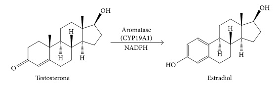 将睾酮转化为雌二醇,将雄烯二酮转化为雌酮的芳香酶使用 NADPH 作为辅助因子。