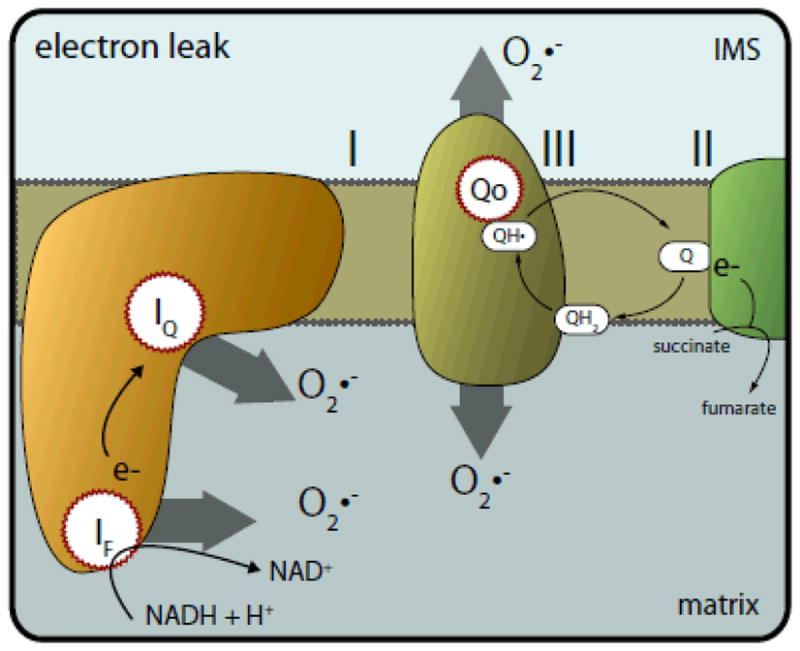 这些复合物由心磷脂稳定。当这些复合物受损且不稳定时,电子不会向前传递电子,而是会泄漏,与氧气反应并产生称为超氧化物的自由基。