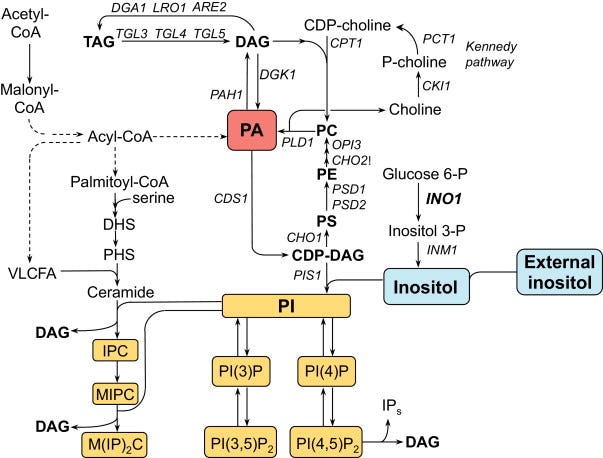 肌醇在此处被整合到磷脂酰肌醇(PI)中。