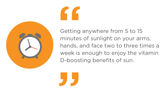 根据 WHO可信来源,每周 2-3 次在您的手臂、手和面部接受 5 到 15 分钟的阳光照射就足以享受阳光带来的维生素 D 促进益处。请注意,阳光必须穿透皮肤。在皮肤上涂抹防晒霜或衣服不会导致维生素 D 的产生。