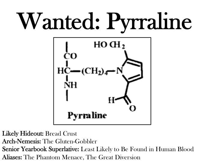 2005 年一项为期 9 天的研究的作者 ( 2) 将 18 人分为四组,以估计饮食中吡咯啉在多大程度上可以被吸收和排泄到尿液中。一组作为对照,其他三餐基于椒盐卷饼、咖啡冲泡或奶油冻,每餐都含有已知数量的吡咯啉。作者得出的结论是,40% 到 65% 的膳食吡咯啉最终进入尿液,而膳食中的吡咯啉占其中发现的 90%。这些结果强烈表明饮食中的吡咯啉被吸收,但我们不能完全排除某些食物会增加我们体内产生的吡咯啉量的可能性。另一方面,假设它被吸收了,我们不知道它的一部分会在多大程度上留在我们的身体里,至少在假设的情况下,