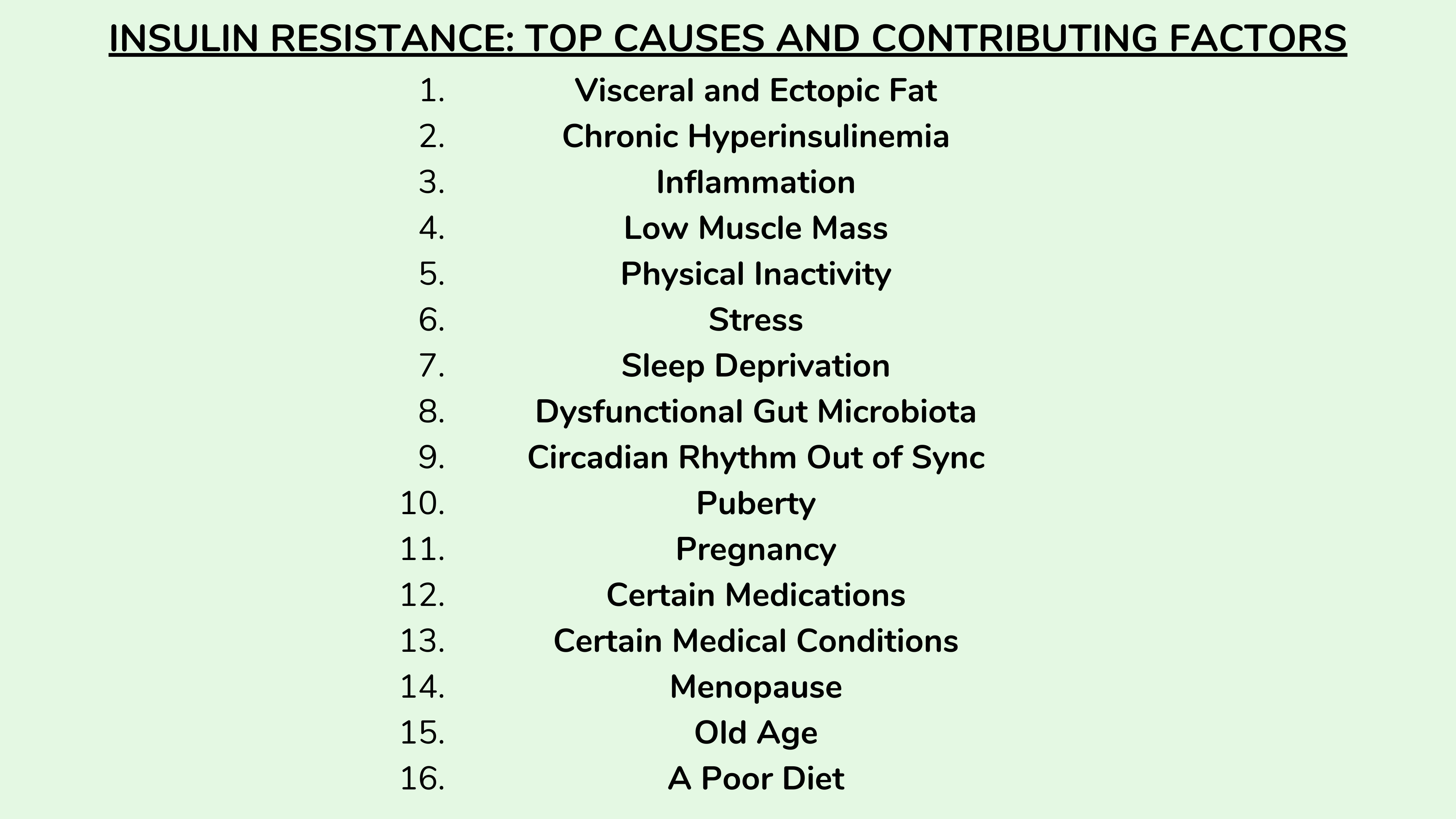我希望您现在能够认识到,胰岛素抵抗的原因不是单一的。因此,重要的是要清楚个人接触到的这些因素中的哪些,因为为了使胰岛素敏感正常化,需要解决具体的原因。